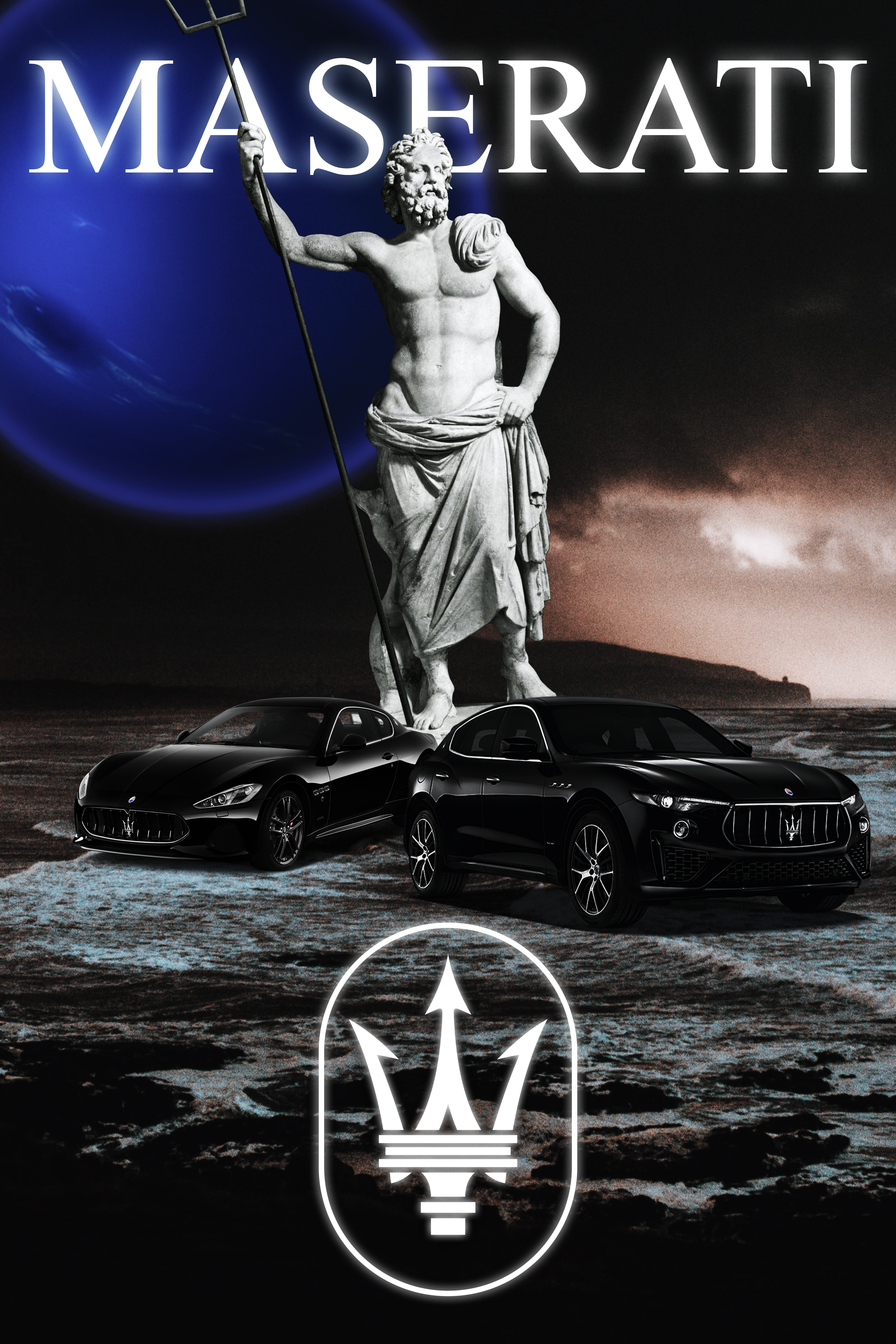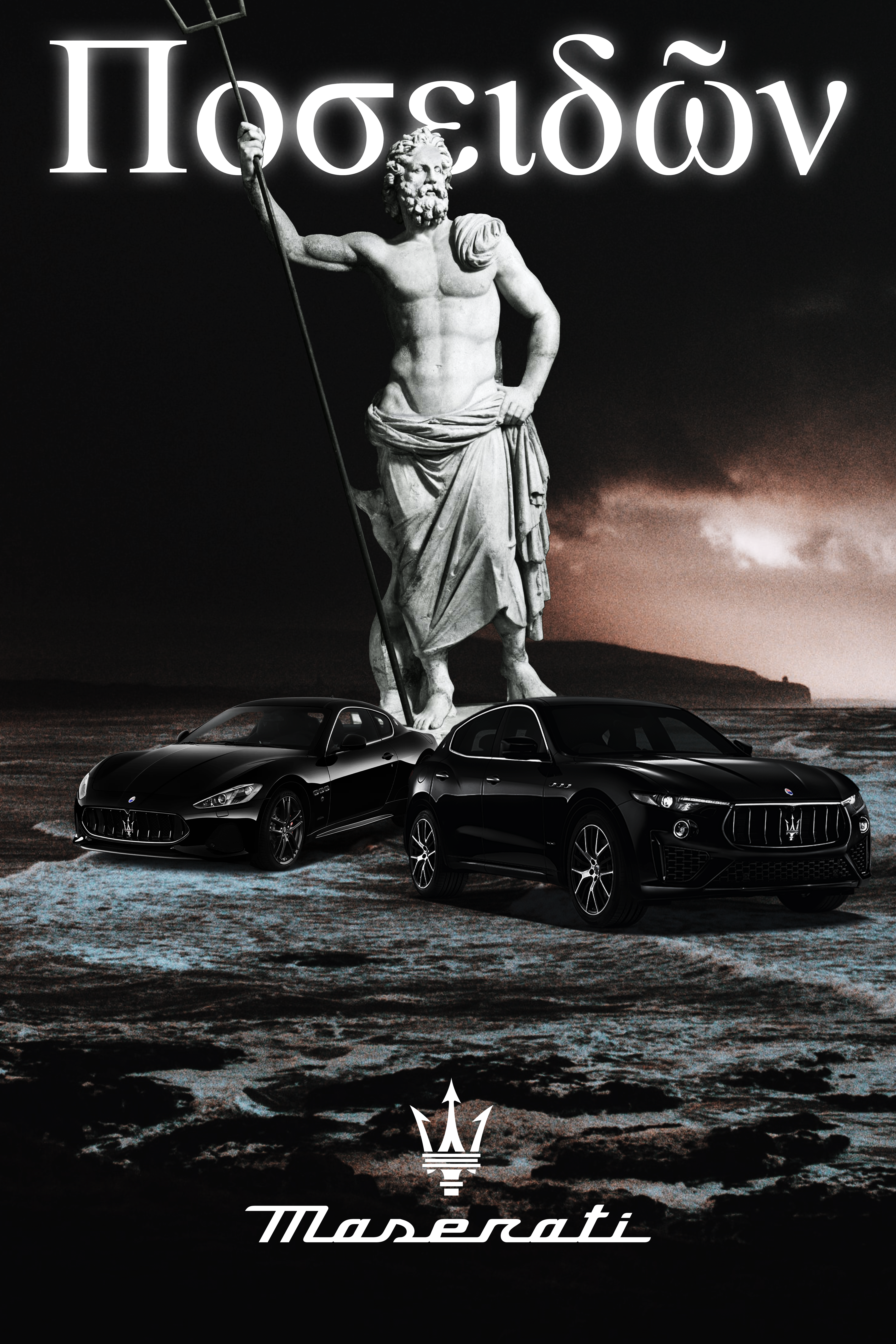 Originally I was aiming for a more Greek feel to parody BMW’s new EV campaign that featured the Greek gods. I chose Poseidon as his trident is used in the logo for Maserati, which is Step One Automotive’s flagship brand, so as a way of nodding to the nation that he came from I made the title caption fully in Greek.