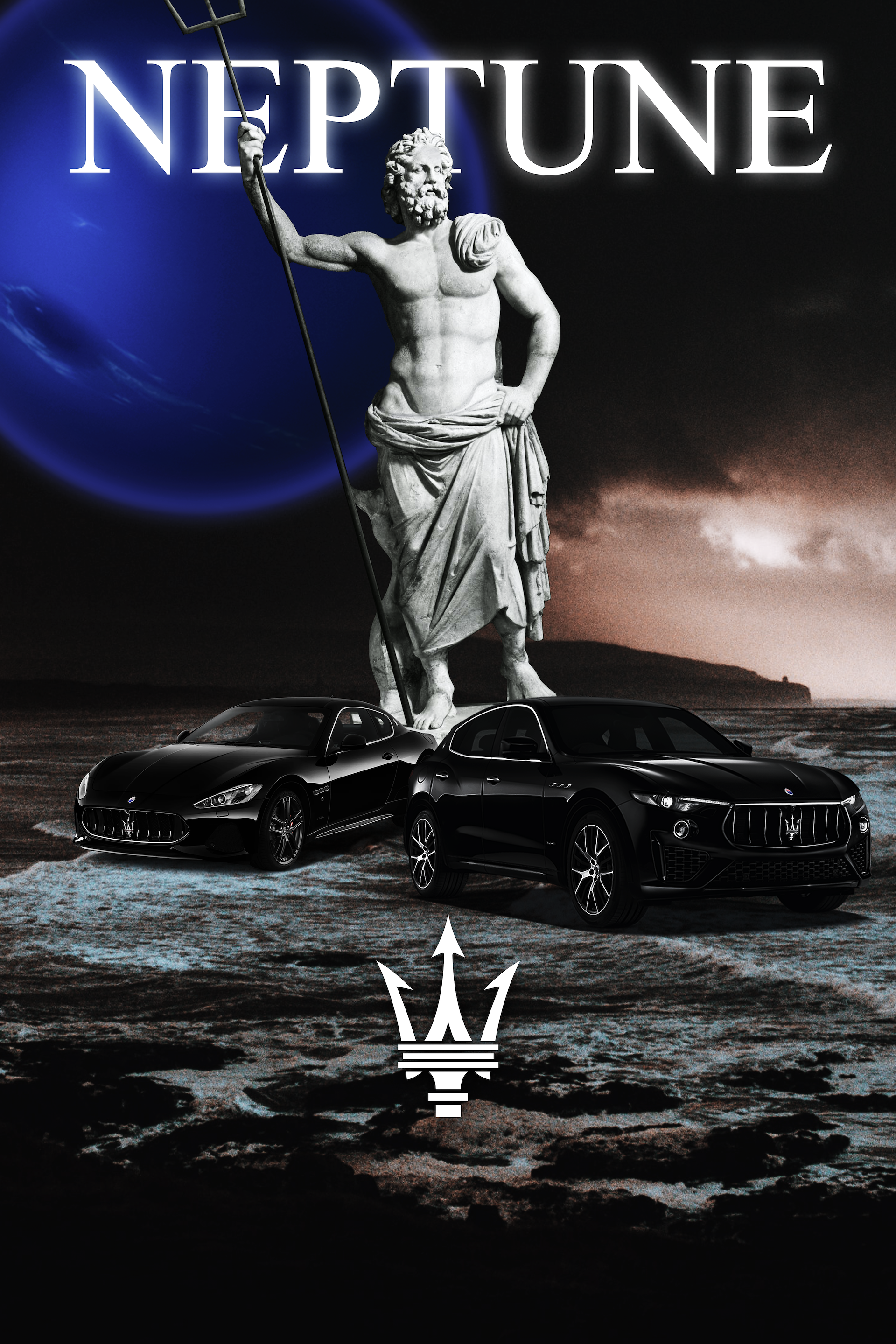 Originally I was aiming for a more Greek feel to parody BMW’s new EV campaign that featured the Greek gods. I chose Poseidon as his trident is used in the logo for Maserati, which is Step One Automotive’s flagship brand, so as a way of nodding to the nation that he came from I made the title caption fully in Greek.